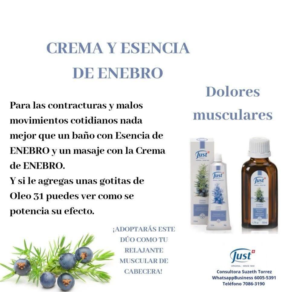 Ayudale a reducir esos molestos dolores con JUST, con un poco de crema de Enebro y crema Herbal.